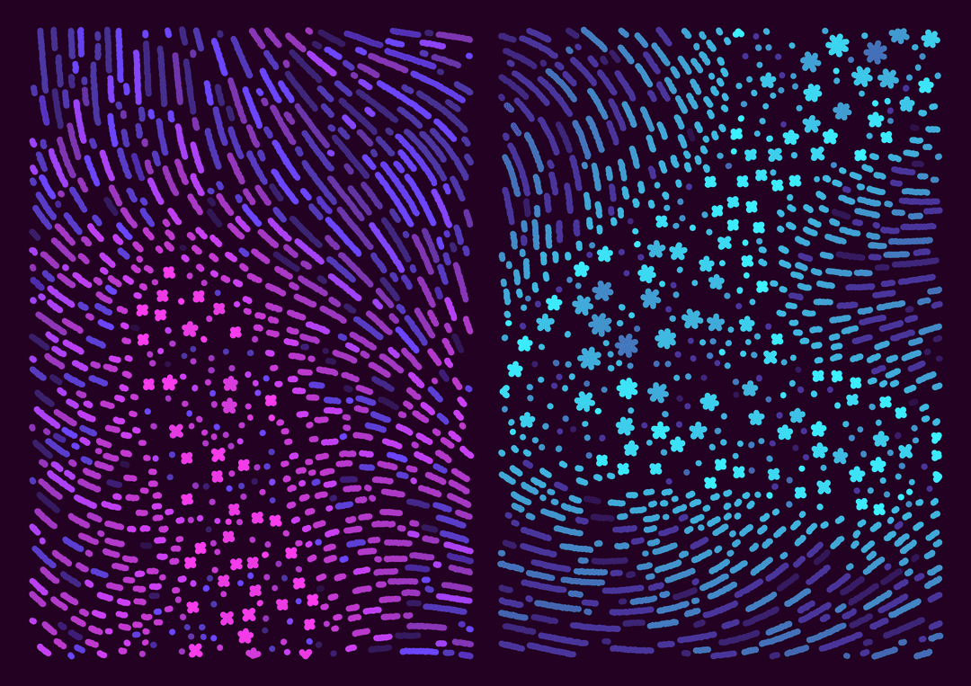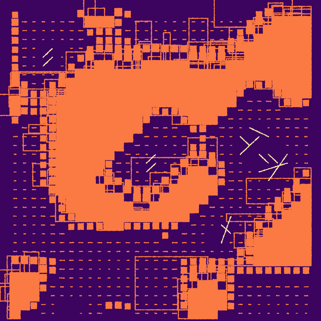 Regions that build up and erode. The emptiest areas try to link with each other.